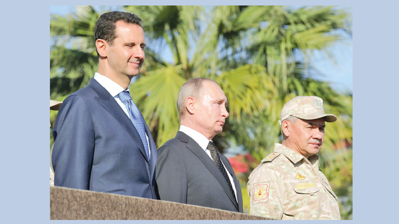 The Kremlin strongman thanked Russian troops for defending Russia from terrorism and helping Syria remain a “sovereign independent state”.